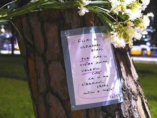 “Fiori di oleandro bianco puri come la vostra anima, velenosi come chi via sterminato senza motivo e pietà”; “Fiori di plumbago azzurri come il cielo che mai più potrete accarezzare”; “Ho gridato in silenzio ma non sono riuscito a scappare”; “Un albero è bello ma ancora di più ha diritto alla vita”: questi i cartelli che sono stati posizionati sopra i tronchi dei pini abbattuti negli scorsi giorni in viale Thaon di Revel, proprio davanti alla stazione di Genova Brignole.