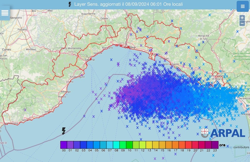 È scatta a mezzanotte l’allerta arancione per temporali sulla Liguria, fatta eccezione per l’imperiese. Durante la notte, intorno alle 2,30, una tempesta di pioggia e fulmini si è abbattuta principalmente in mare: Arpal spiega che “un sistema autorigenerante ha lungamente stazionato nel Golfo Ligure lambendo le coste della nostra regione dove si sono registrate piogge deboli o moderate. Al momento la struttura, ormai indebolita, ha lambito l'estremo Levante e raggiunto la vicina Toscana. I temporali sono stati associati ad un'intensa e spettacolare attività elettrica”. Sulla costa e, in generale, sulla terraferma, le piogge sono state moderate. In Valle Scrivia i fenomeni più intensi, in particolare a Savignone.