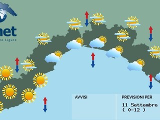 Nelle prime ore del mattino cielo sereno o al più velato. Nel corso della mattina assisteremo a un graduale aumento della nuvolosità, soprattutto sul centro-levante della regione. A metà giornata e nel primo pomeriggio non si esclude qualche isolato rovescio nelle stesse zone. In serata cielo parzialmente nuvoloso o nuvoloso ma senza fenomeni di rilievo.