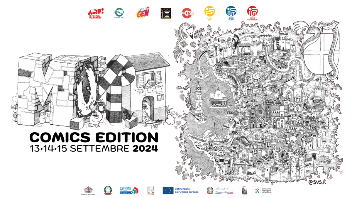 MURA Comics Edition 2024 mette al centro della scena il fumetto, una forma d’arte unica e totalizzante, capace di raccontare storie che vanno dritte al cuore. Attraverso disegni, parole e colori, il fumetto sa creare mondi interi, regalare emozioni e farci riflettere, ed è proprio questo che vogliamo celebrare insieme a voi. Ai Giardini Luzzati e in altri luoghi del Sestiere del Molo, prenderanno vita mostre, laboratori, spettacoli, talk e firmacopie, coinvolgendo artisti di talento e appassionati di tutte le età.