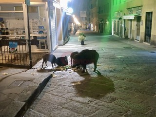 Cinghiali banchettano in strada a Camogli: avvistati quattro esemplari in via Garibaldi (VIDEO)