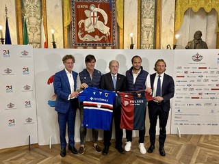 Durante l’incontro a Palazzo Tursi sono state anche presentate le maglie speciali che le due squadre indosseranno mercoledì sera durante la partita. A fine gara saranno vendute e l’intero ricavato andrà devoluto all’ospedale Gaslini.
