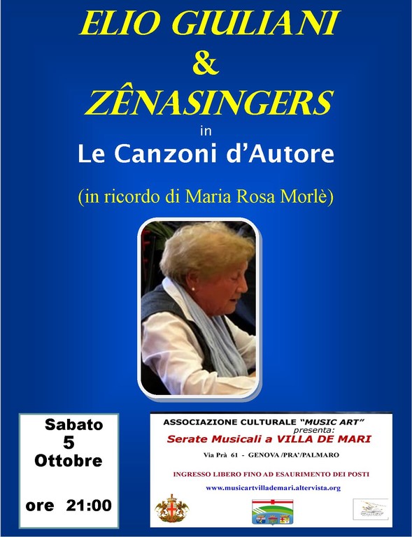 Nella splendida cornice di Palmaro, che tanto era amata proprio da Morlè dove ha portato numerose rassegne musicali sempre caratterizzate da una grande partecipazione di pubblico, il prossimo 5ottobre Elio Giuliani e Zenasingers terranno un concerto a ingresso libero.