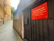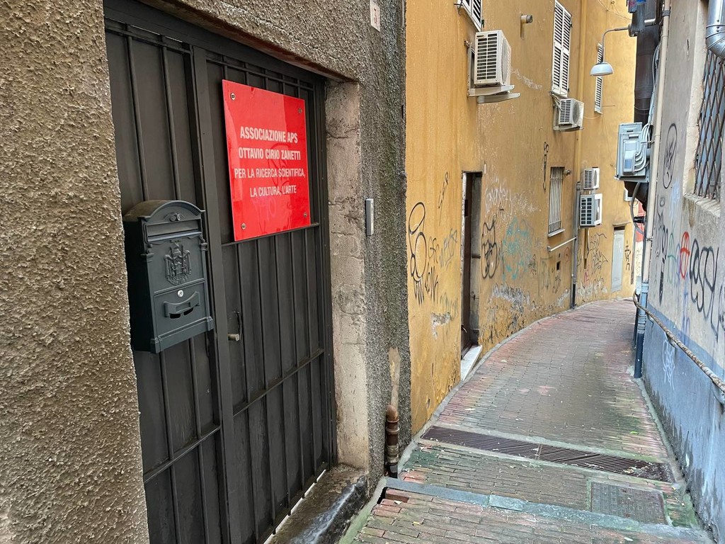 Una targa rossa, con una scritta bianca, fa bella mostra di sé su un cancello di salita San Rocchino: Associazione APS Ottavio Cirio Zanetti per la ricerca scientifica, la cura e l’arte.