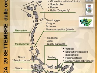 In paese grandi e piccini potranno ballare con le scuole di danza, di ballo liscio, di latino-americano e di country. Ci sarà la possibilità di fare un massaggio shiatsu. Istruttori qualificati saranno disponibili a per far provare e a rispondere ad ogni domanda circa i loro corsi.