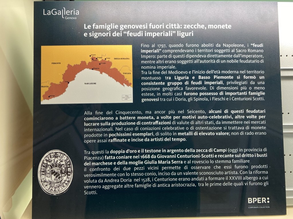 Durante il fine settimana, sarà anche possibile esplorare la collezione numismatica appartenente a Bper Banca. "L’esposizione narra le gesta delle grandi famiglie genovesi e delle zecche locali e nazionali", continua Primo. "Tra i pezzi più preziosi c’è lo Scudo della Galera, coniato da Andrea Doria, con l’incisione di un’imbarcazione sul rovescio, simbolo delle grandi imprese navali della famiglia".