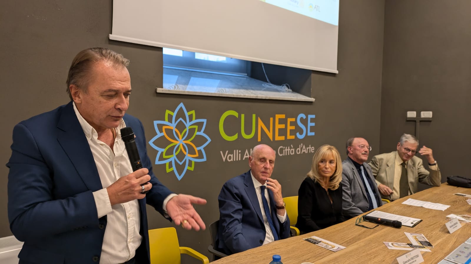 La presentazione questa sera, venerdì 4 ottobre, nella sede Atl del Cuneese. Al tavolo dei relatori, il presidente ATL del Cuneese Mauro Bernardi, la vicepresidente dell'ATL del Cuneese Gabriella Giordano, l'assessore regionale Paolo Bongioanni, il presidente della Fondazione CRF Giancarlo Fruttero, e Luigi Fontana e Ferdinando Tempesti del Rotary Club Cuneo 1925.