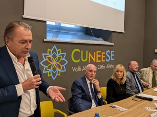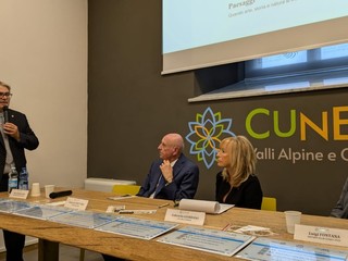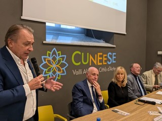 La presentazione questa sera, venerdì 4 ottobre, nella sede Atl del Cuneese. Al tavolo dei relatori, il presidente ATL del Cuneese Mauro Bernardi, la vicepresidente dell'ATL del Cuneese Gabriella Giordano, l'assessore regionale Paolo Bongioanni, il presidente della Fondazione CRF Giancarlo Fruttero, e Luigi Fontana e Ferdinando Tempesti del Rotary Club Cuneo 1925.