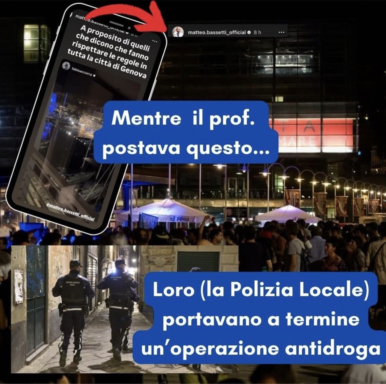 Il primario del San Martino punta il dito contro gli eventi collaterali della Jeans Week: “A proposito di quelli che dicono che fanno rispettare le regole…”. Gambino difende gli agenti: “Mentre il prof. posta, la Locale porta a termine un’operazione antidroga”