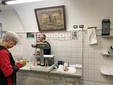 Si comincia molto presto a lavorare in bottega e le operazioni per la preparazione della trippa iniziano tra le quattro e mezza e le cinque: “Dopo aver pulito la trippa, si mette a bollire in questi pentoloni che tengono settecento litri d’acqua. Quando è pronta, ancora calda, viene portata sul retro e spazzolata pezzo per pezzo fino a che non si raffredda, viene poi messa nei bidoni perché il processo sia completo e infine si porta al banco per la vendita e per la cottura”.