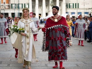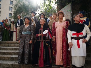 A precedere il momento istituzionale, la consueta sfilata dei cortei storici che ha attraversato il centro cittadino. Con loro anche l’assessora alle Tradizioni Cittadine Paola Bordilli.