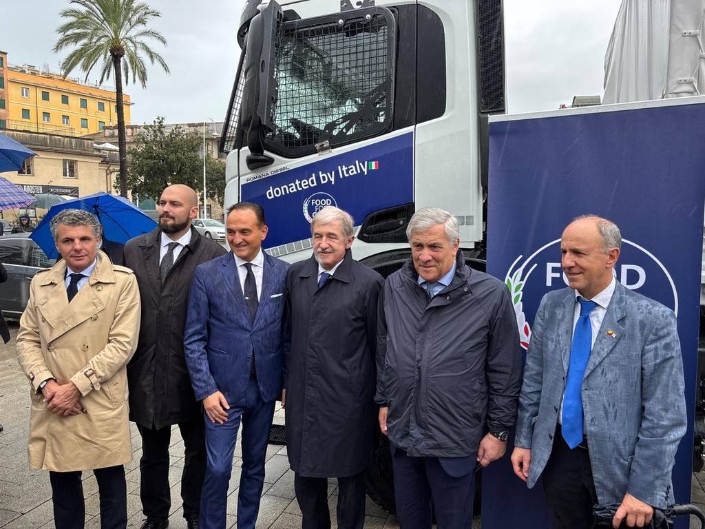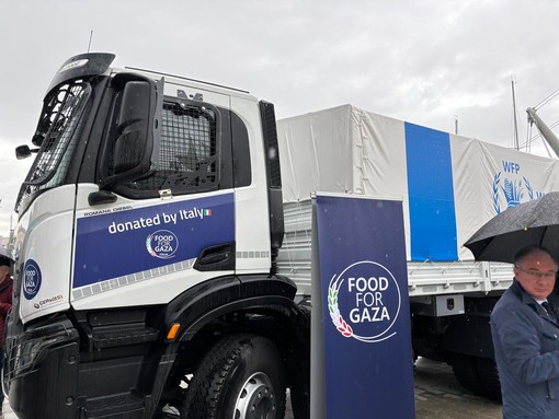 Si è tenuta questo pomeriggio al Porto Antico di Genova la cerimonia di consegna del primo dei quindici camion che lo stato italiano ha donato al Programma Alimentare Mondiale, all’interno dell’iniziativa Food For Gaza.