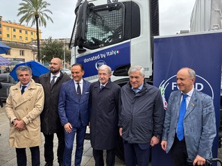 Si è tenuta questo pomeriggio al Porto Antico di Genova la cerimonia di consegna del primo dei quindici camion che lo stato italiano ha donato al Programma Alimentare Mondiale, all’interno dell’iniziativa Food For Gaza.