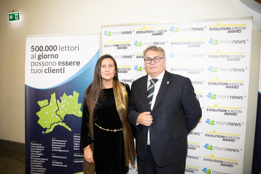 Chiara Osnago Gadda, event manager del premio Evolution Horizon Award con l'editore di More News, Enrico Anghilante