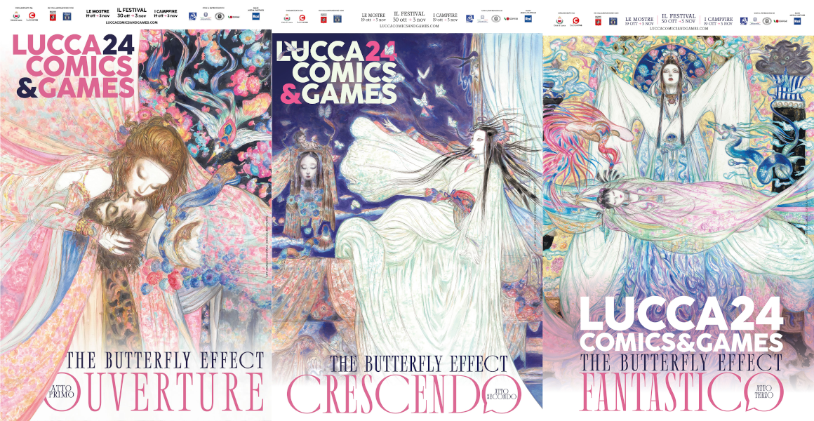 Le tre locandine del Lucca Comics&Games 2024, dedicate a Giacomo Puccini