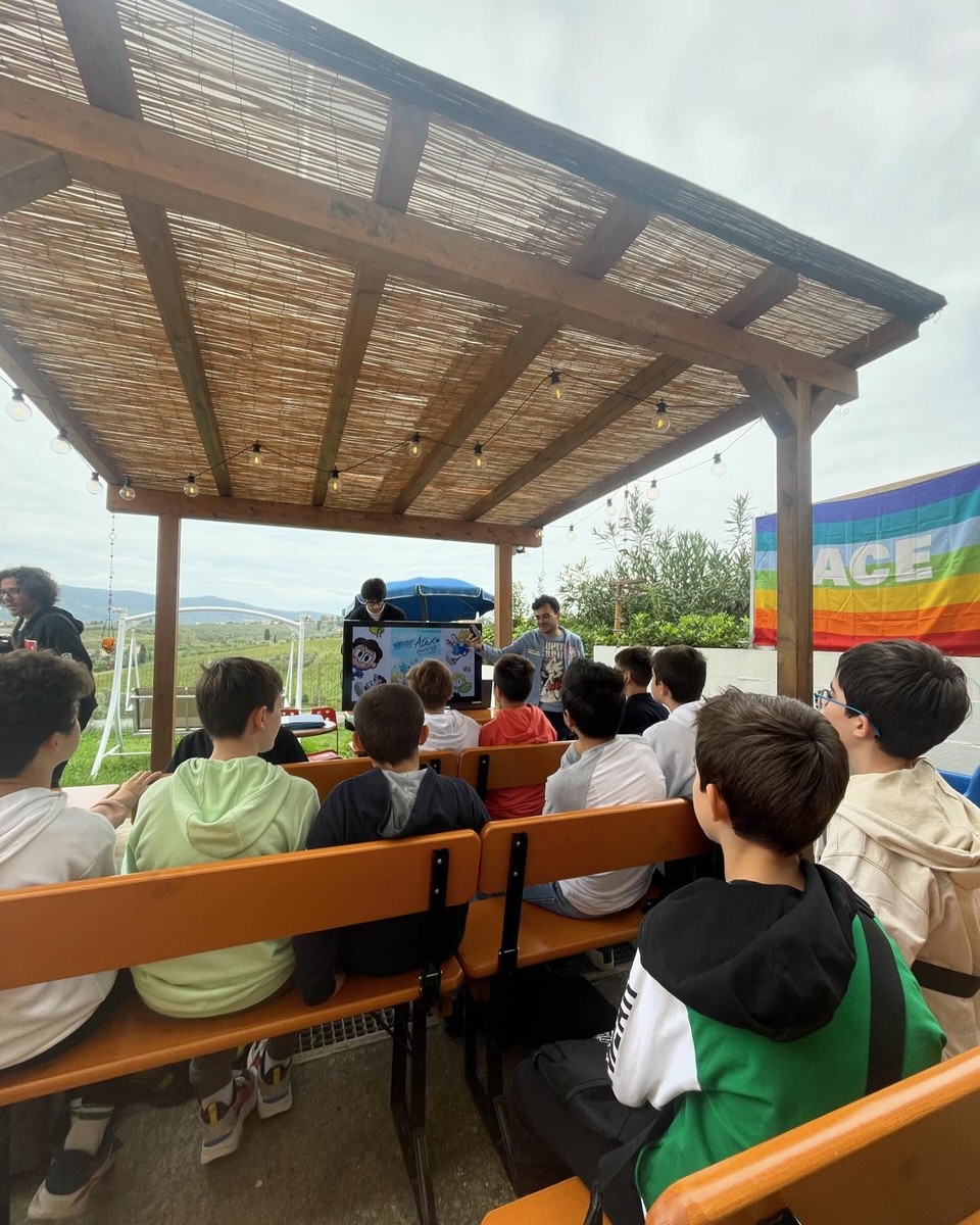 Ma partiamo dall’esterno: d’estate, dopo aver cenato all’aperto (di fronte al già citato panorama), si può, ad esempio, giocare a “Forza 4” o a “Indovina chi” riprodotti a grandezza naturale.