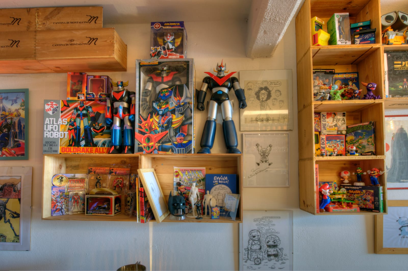 In verità il nome non rende giustizia alla magia di questo posto. Sì, perché il museo (che si affaccia direttamente sulle colline toscane) non ospita soltanto giocattoli; ci sono anche fumetti, action figures, videogames, statue, gadgets, vinili e altre cose strane. Poi ci sono i piatti squisiti cucinati da Paolo e dai suoi familiari.