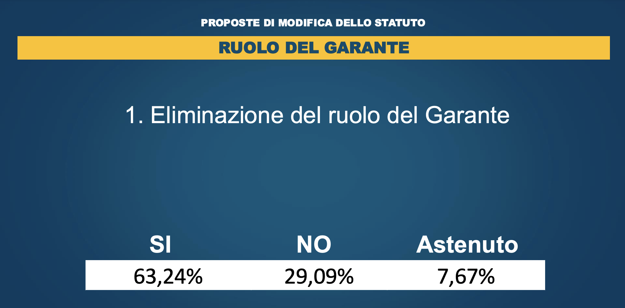 La platea ha accolto con un applauso l’esito della votazione, il presidente Giuseppe Conte si è limitato a dire dal palco “Avete deciso, ne prendiamo atto”.