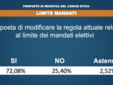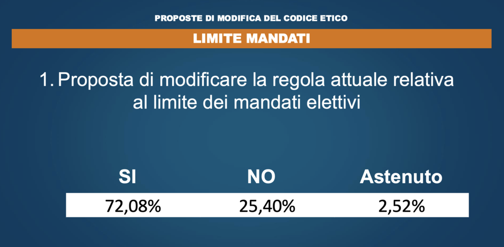 Ma il popolo del Movimento 5 Stelle ha messo le mani anche sulle fondamenta. Cade il limite dei due mandati, con il 72% degli iscritti che ha votato “sì” al superamento della norma che all’inizio era stata tra i grandi cavalli di battaglia di Grillo e Casaleggio.