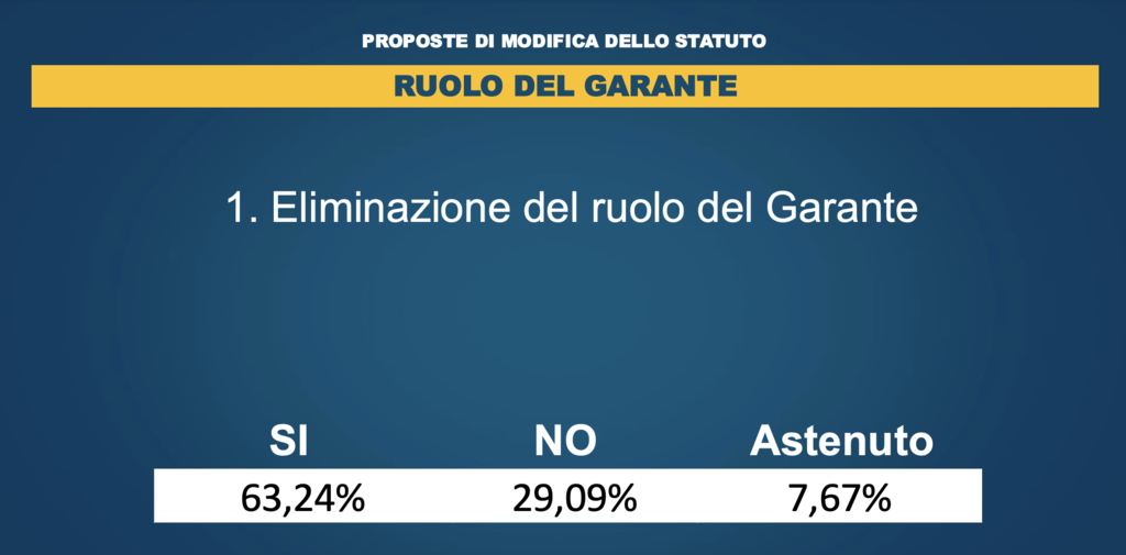 L’assemblea costituente pentastellata al Palazzo dei Congressi dell’Eur di Roma ha disegnato il Movimento del futuro (e del presente) dopo la batosta ligure e dopo i risultati deludenti in Emilia-Romagna e in Umbria. In una chiamata alle urne che ha visto coinvolta circa la metà degli iscritti (molti gli astenuti anche in casa 5 Stelle), il 63% degli iscritti ha votato “sì” alla proposta di “eliminazione del ruolo del garante”. Leggi: “cacciare Beppe Grillo”. Sarà sostituito da un organo collegiale.