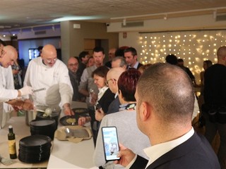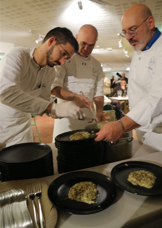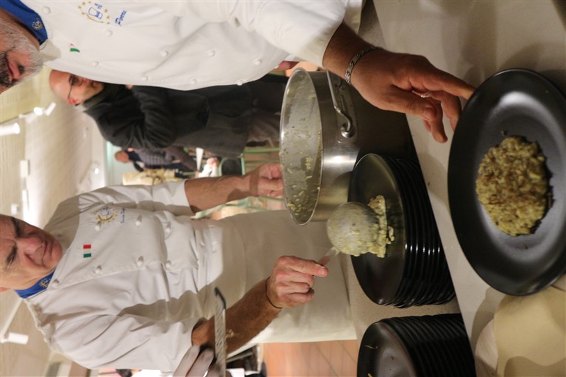 Il riso, mantecato in diretta di fronte al pubblico, ha catturato l'attenzione degli ospiti, che sono rimasti letteralmente affascinati dal gusto e sapore intenso del piatto. In apertura della serata, lo chef Valter Ferretto, rappresentante piemontese di Euro Toques e da oltre 35 anni stella Michelin, aveva deliziato i partecipanti con i migliori salumi e formaggi delle Langhe, insieme a preparazioni gustose come la battuta al coltello e l’uovo tartufato.