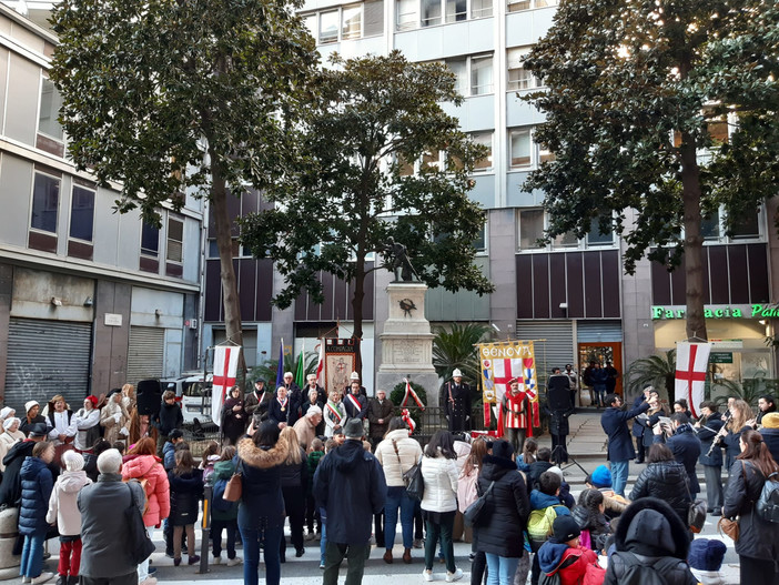 La commemorazione ha preso il via con la deposizione di una corona d’alloro al monumento in piazza Portoria, luogo che conserva la memoria di quel giorno in cui l’undicenne Perasso lanciò un sasso al grido «Che l’inse?» («Che la cominci?»), dando il via alla sollevazione.