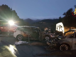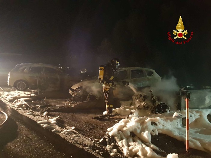 Arenzano, auto e scooter in fiamme alla pineta
