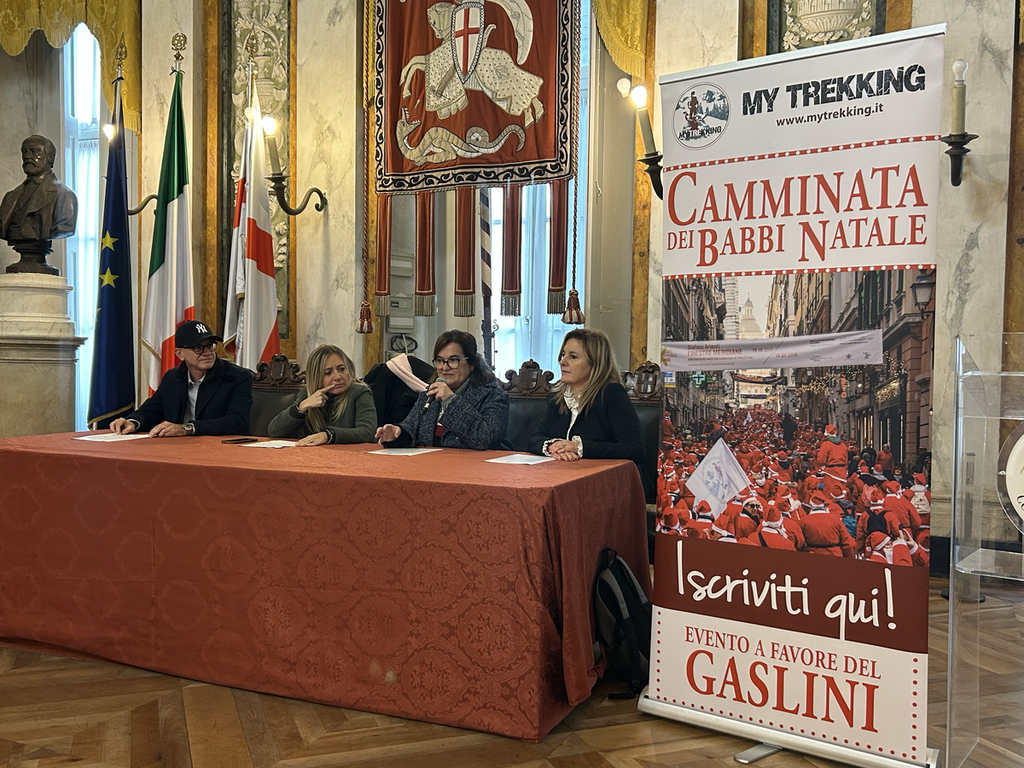 Torna a Genova anche per quest'anno l'ottava edizione della 'Camminata dei Babbi Natale' a favore dell'Istituto Giannina Gaslini, organizzata dall'associazione di promozione sociale 'My Trekking', assieme al patrocinio del Comune di Genova, presentata questa mattina a Palazzo Tursi.