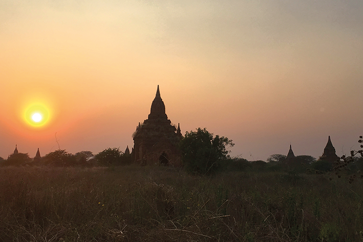 Sono arrivata a Rangoon, dove il caos delle strade e i clacson incessanti si mescolavano alla calma quasi mistica della Shwedagon Pagoda. Non dimenticherò mai quella prima sera: il sole stava calando e la pagoda, completamente ricoperta d’oro, sembrava illuminarsi dall’interno. Intorno a me, famiglie, monaci, e fedeli in preghiera: una spiritualità palpabile che sembrava avvolgermi. Da lì ho preso un bus notturno per Bagan, e quella è stata una delle esperienze più intense del viaggio. Il tragitto è stato lungo e scomodo, ma l’arrivo ha ripagato ogni fatica.