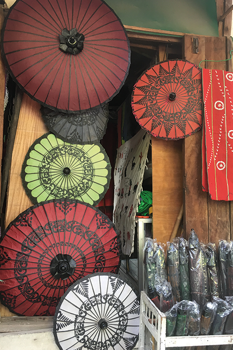 I mercati in Birmania sono tra le esperienze più autentiche da vivere. C’è qualcosa di magico nel camminare tra le bancarelle, dove si vende di tutto. Ogni oggetto, ogni frutto, ogni spezia aveva una sua estetica, una bellezza che sembrava pensata per sedurre l’occhio. I prodotti erano disposti con una perfezione incredibile, come se si trattasse di un’esposizione o una mostra d’arte. E poi le stoffe, le trame, i colori, rappresentavano una sinfonia per i sensi. Non mancavano poi le piccole meraviglie: ombrellini dipinti a mano, oggetti in legno scolpiti con maestria per raccontare una tradizione che non si trova facilmente altrove. La cosa che mi ha affascinato di più, però, è stata la simpatia dei venditori. Un’interazione che fa parte del mercato, che lo rende vivo, vibrante. Ho comprato delle teste di Buddha scolpite, dei piccoli oggetti che mi ricordano, ancora oggi, la bellezza di quel luogo. Mi piace pensare che i mercati che ho visitato fossero un angolo di vita autentica, dove il vero spirito della Birmania si faceva sentire in ogni gesto. Non ricordo di aver visto animali vivi in vendita, e ne sono felice.