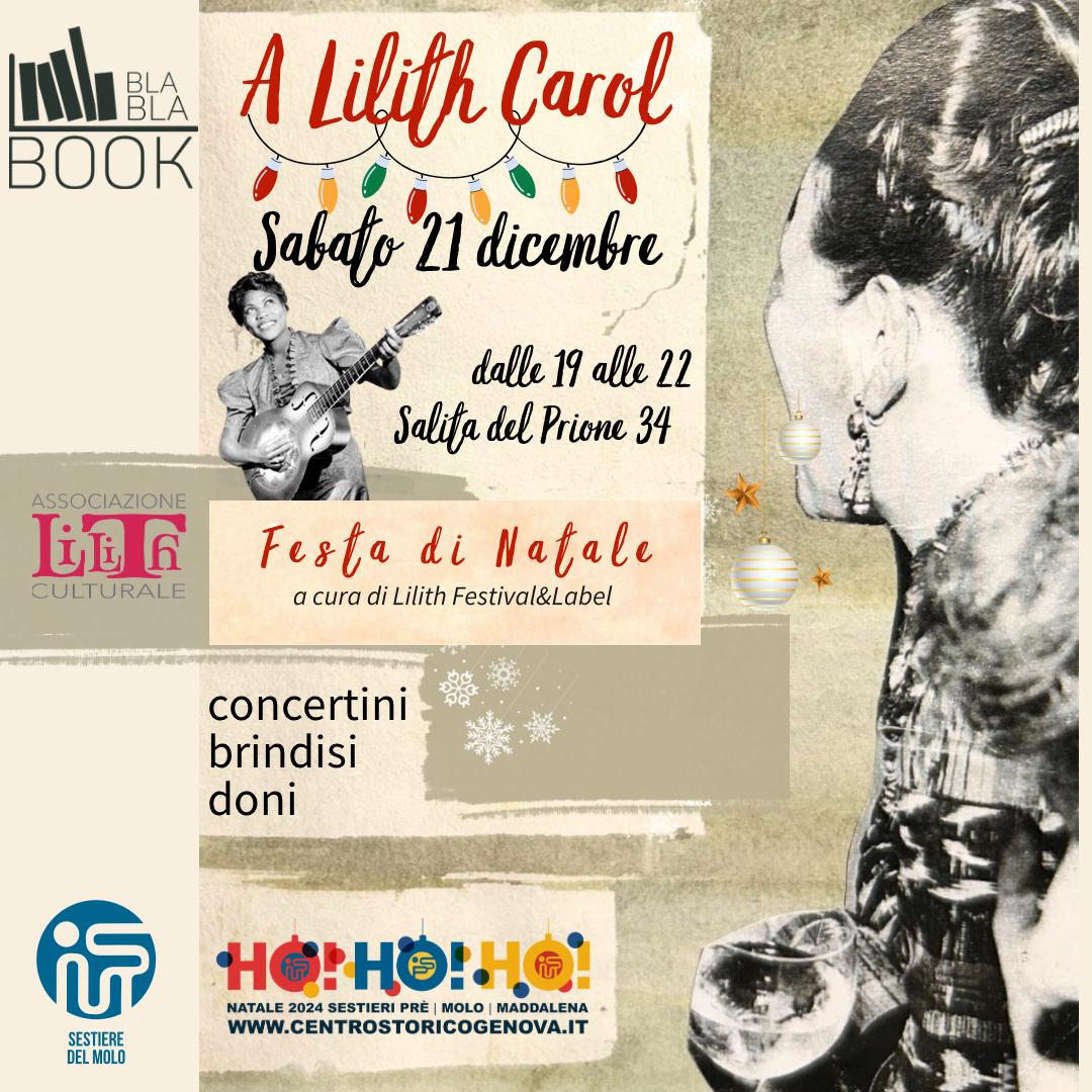 Torna l’appuntamento con ‘A Lilith Carol’, l’ormai tradizionale festa natalizia di Lilith Festival&Label, in programma sabato 21 dicembre alla biblioteca sociale del Sestiere del Molo ‘Bla Bla Book’ in salita del Prione 34 con ingresso libero dalle 19 alle 23.