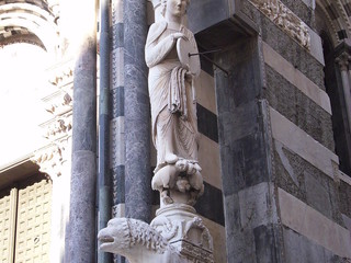 Per qualcuno, la figura che decora lateralmente la facciata di San Lorenzo sarebbe una rappresentazione del dio Giano, il dio bifronte legato alla fondazione di Genova. Altri, invece, lo associano a Jacopo da Varagine, arcivescovo genovese del XIII° secolo, conosciuto soprattutto per la sua Legenda Aurea.