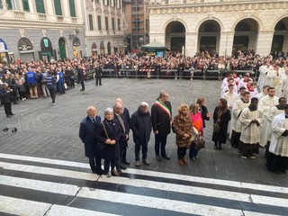 Oltre a Mons. Tasca e Don Gianluigi Ganabano, referente diocesano per il Giubileo, presenti anche il presidente di Regione Liguria Marco Bucci, il vice sindaco Pietro Piciocchi, l’assessora alle Tradizioni Cittadine Paola Bordilli e il presidente del Consiglio Comunale Carmelo Cassibba. Grandissima la partecipazione dei fedeli, sia nella Chiesa del Gesù che in Cattedrale.