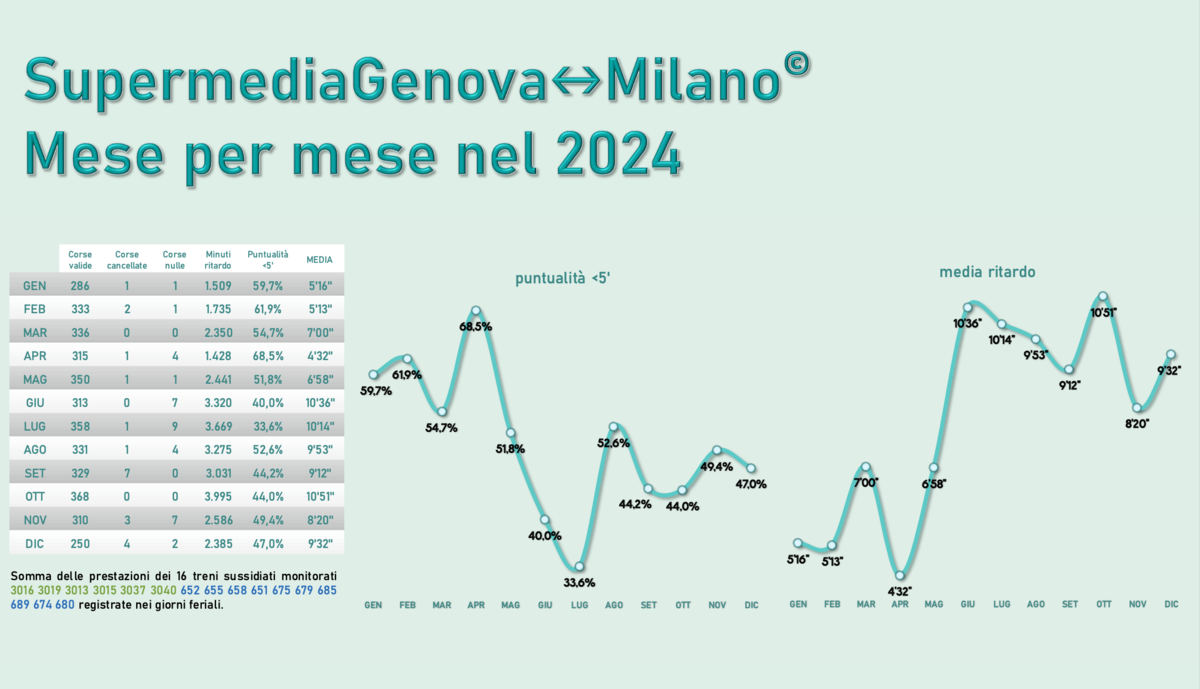 Il 2024 per la linea ferroviaria Genova - Milano è stato un vero e proprio anno da incubo come hanno m mostrato i dati raccolti dalla GenovaMilanoNewsletter e messi assieme da Assoutenti.