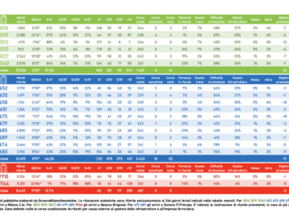 Il 3016 è passato da una media di 3 a 6 minuti di ritardo, con la puntualità scesa dal 79% al 61%. Il 3019 ha visto un aumento di 4 minuti di ritardo e un crollo della puntualità al 27%.