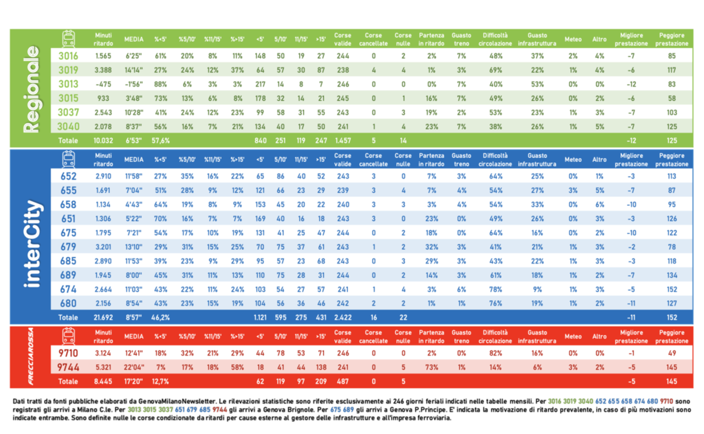 Da segnalare, inoltre, le prestazioni inaccettabili dei due Frecciarossa, che per il settimo anno consecutivo si confermano al di fuori di ogni logica comprensibile: