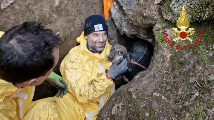 Cane rimane intrappolato nella tana di una volpe nei boschi di Marmassana, salvato dai Vigili del Fuoco (VIDEO)