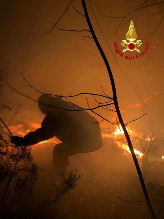 In pochi istanti le fiamme si sono rapidamente estese tra gli arbusti. I Vigili del Fuoco hanno operato con due squadre e il supporto di una autobotte giunta con i mezzi boschivi. Una parte dell'incendio è stata spenta stendendo oltre centocinquanta metri di tubazione, l'altra battendo a mano con i flabelli. Alle quattro e trenta l'incendio è stato dichiarato spento.