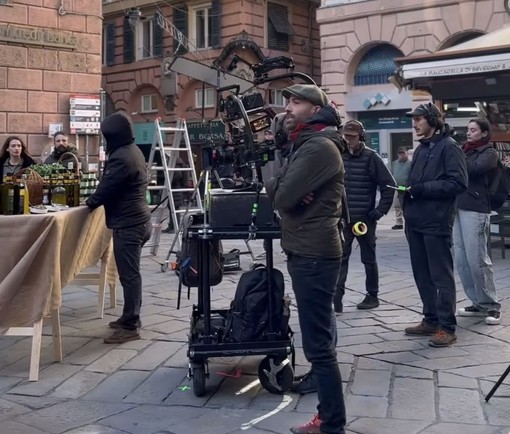 Le telecamere si sono accese ieri in piazza Banchi per le riprese di una clip della campagna “La mia Liguria” che tradizionalmente accompagna la kermesse musicale.