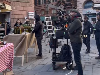 Le telecamere si sono accese ieri in piazza Banchi per le riprese di una clip della campagna “La mia Liguria” che tradizionalmente accompagna la kermesse musicale.