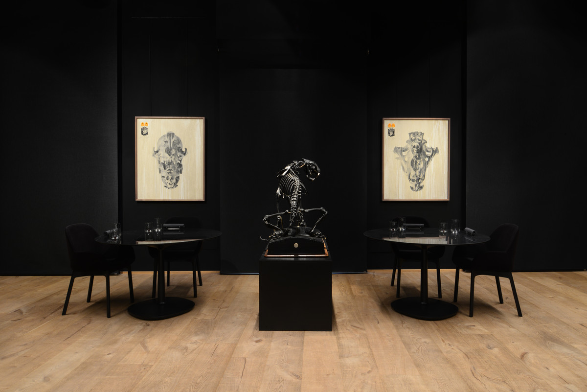 Partiti con opere del maestro Lorenzo Puglisi, oggi il locale ospita il duo olandese Sinke & van Tongeren, che antepongono il nome di Charles Darwin al proprio in omaggio al grande naturalista, realizzando opere che rappresentano un connubio tra le meraviglie dell'arte e i segreti della scienza: “Sono stati capaci di elevare alla massima forma artistica la tassidermia - chiarisce lo chef -. Attualmente abbiamo una tigre, un rarissimo granchio e dei quadri che hanno un chiaro risvolto sociologico”. Un’esposizione, quindi, che si sposa con la filosofia del locale: offrire un'esperienza innovativa ad un pubblico in cerca di bellezza, creando un contenitore di meraviglie che consenta una sinestesia sensoriale in cui l'arte culinaria si unisce alla contemplazione delle opere esposte".