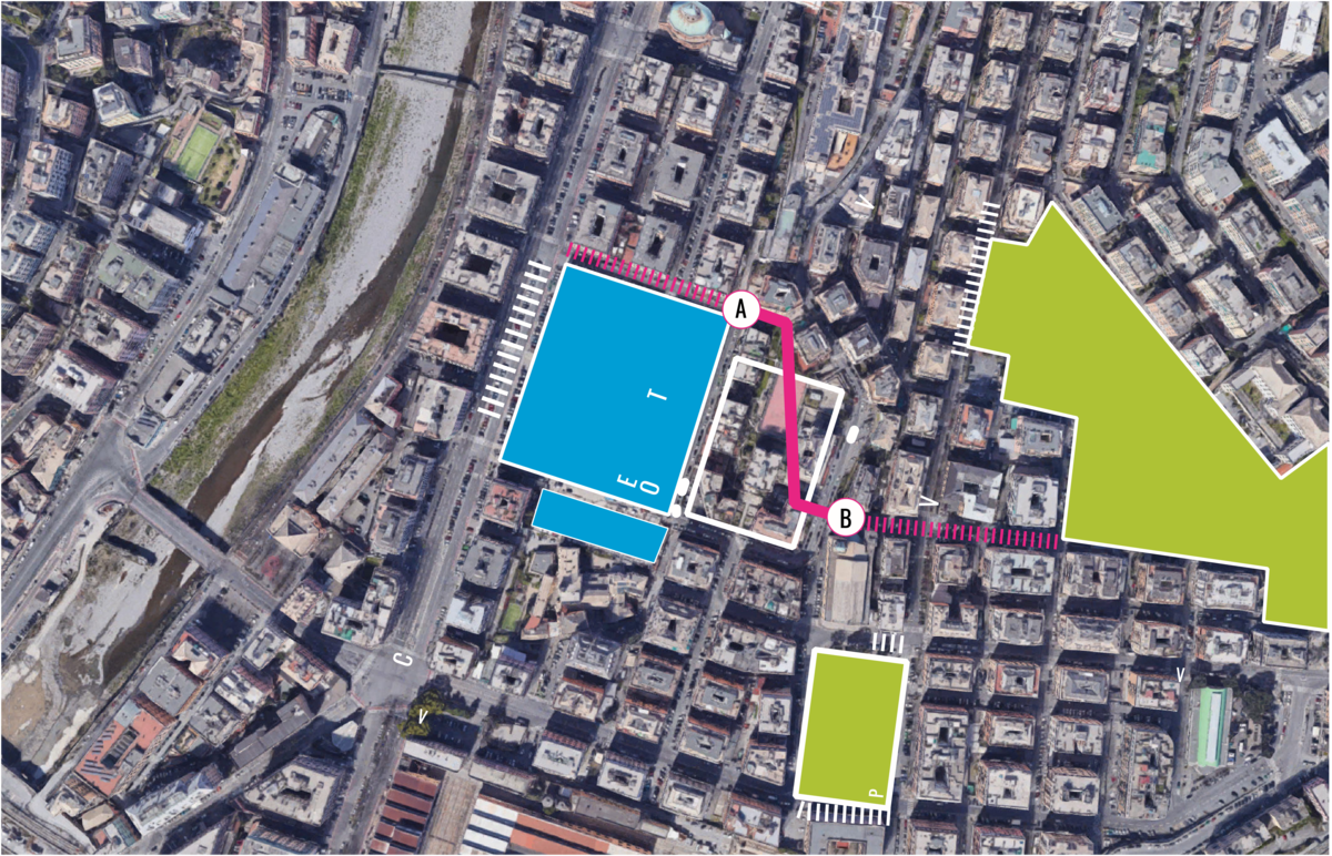 "L’oggetto in questione è l’ormai abbandonato rifugio antiaereo di San Fruttuoso, con i suoi due ingressi: uno da via Carlo Varese e l’altro su via Vito Vitali. Posto trasversalmente al di sotto del grande isolato edilizio circondato dalla viabilità 'in discesa' di via Cellini, rappresenta una valida opportunità di passaggio per i cittadini dell’area che vogliano transitare dalla zona di corso Sardegna al cuore del quartiere e viceversa, senza salti di quota e con una riduzione importate delle attuali distanze percorse", si legge nel progetto.