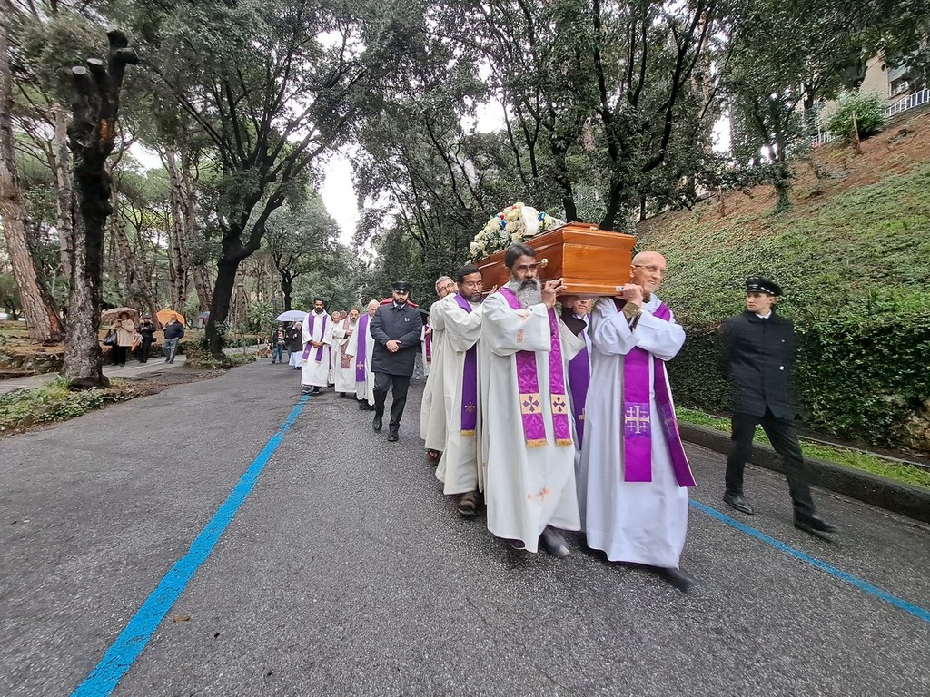 Alla fine del lungo percorso il feretro è stato consegnato al personale di A.Se.F. del Comune di Genova per il trasporto al crematorio della So.Crem di Staglieno.