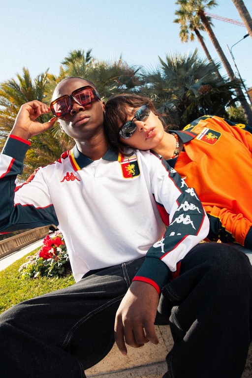 Sull’impronta del quarto kit dell’anno scorso e di un mood fortemente connotato, ecco anche una maglia bianca con inserti rossi e blu sulle maniche lanciata con Kappa insieme a una terza divisa, quella arancione da molti ricordata non in un momento propriamente propizio della storia genoana.