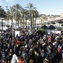 “Grazie, e che sia tutta vita” recita lo striscione appeso nel suo quartier generale, che affaccia su via Matteotti, riprendendo l’ultima strofa della sua ‘Balorda nostalgia’. E l’emozione continua.