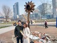 Questa mattina nei giardini della Biblioteca degli Alberi di Milano, nel cuore di City Life circondata dai grattacieli, è stata inaugurata un'installazione, un'opera d'arte, realizzata dall'artista Mauro Seresini, che sarà visitabile fino al 22 febbraio, per non dimenticare quel 24 febbraio 2022 quando iniziò l'invasione dell'Ucraina da parte della Russia.