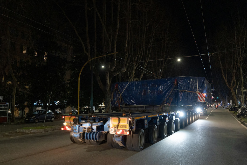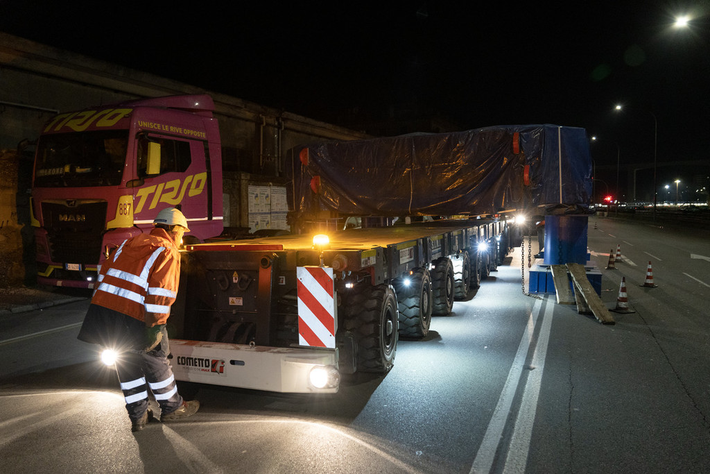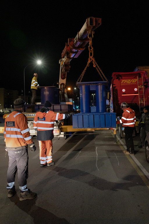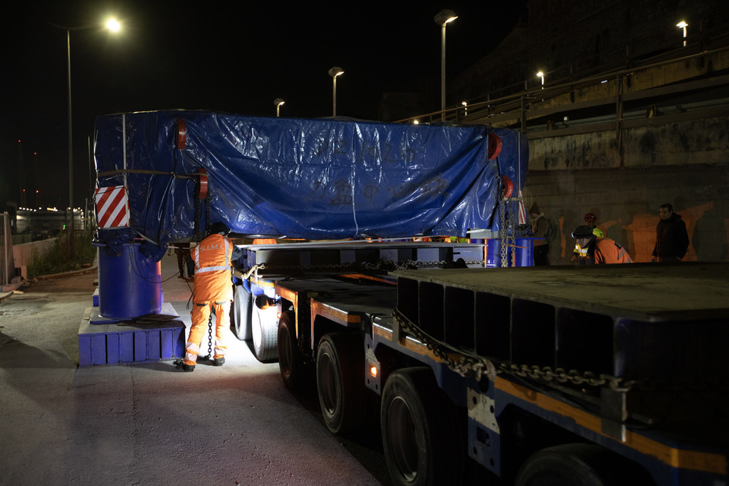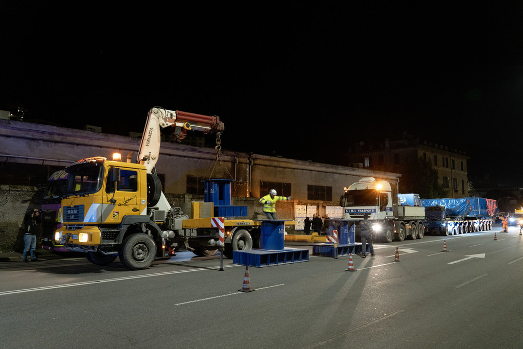 Il trasporto eccezionale, gestito da una ditta specializzata e scortato dalla Polizia locale di Genova, si è svolto senza criticità e nei tempi previsti. Le operazioni si sono articolate in due fasi: nella prima, il componente è stato trasferito su chiatta dal terminal San Giorgio ai cantieri Mariotti, dove è stato sbarcato con l’ausilio di gru e caricato su mezzi multi-asse; nella seconda, il convoglio ha attraversato via dei Pescatori fino a piazzale Kennedy. Il trasporto notturno da piazzale Kennedy all’area di cantiere si è poi svolto lungo corso Marconi, via Rimassa, corso Torino, corso Sardegna, corso De Stefanis, via Enrico Toti, via Lungo Bisagno Istria e Dalmazia, fino a via Adamoli.
