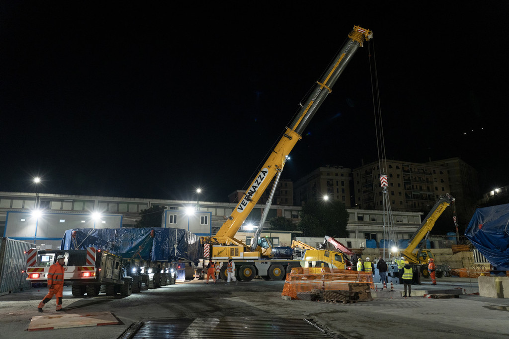 Si sono concluse alle 2 della scorsa notte le operazioni di trasporto del primo grande componente della maxi-fresa destinata allo scavo dello scolmatore del Bisagno, avviate ieri sera alle 21. Nello specifico, l’elemento frontale della Tunnel Boring Machine (Tbm), dal peso di circa 120 tonnellate, è stato trasferito fino all’area di cantiere dove sono in corso i lavori per la realizzazione dell’opera.