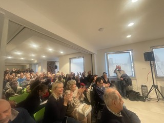 Sala gremita per il primo incontro pubblico di Silvia Salis con gli iscritti e simpatizzanti di Azione, che ne appoggia la candidatura a sindaca.
