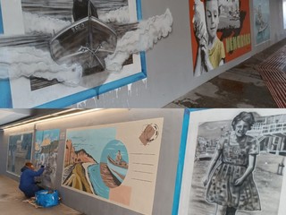 Ci sono lo Scoglio dell’Oca e gli stabilimenti balneari, le lancette dei pescatori e la grande lampara, le cartoline di quando a separare la città dalla spiaggia c’era solo la ferrovia. Ci sono ritratti di donne e uomini felici, ci sono tanta nostalgia ma anche tantissimo orgoglio, nei murales che, da qualche giorno, decorano e abbelliscono uno dei tunnel in cemento armato che servono la stazione ferroviaria di Genova Pra’.